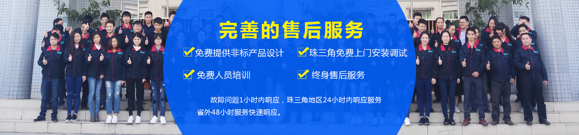 專業(yè)技術(shù)人員上門交機(jī)培訓(xùn),指導(dǎo)機(jī)器操作,并培訓(xùn)機(jī)器后續(xù)維護(hù)保養(yǎng),提高機(jī)器使用壽命,一年免費(fèi)保修維護(hù),專業(yè)的售后團(tuán)隊(duì),保證故障問題1小時(shí)內(nèi)響應(yīng),珠三角地區(qū)24小時(shí)內(nèi)上門,廣東省外48小時(shí)內(nèi)上門。